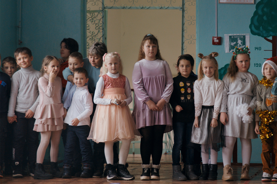 Eine Schulklasse beim Sportunterricht: Die Kinder rennen und dribbeln Bälle auf den Boden, wie man das kennt. In der Ukraine aber, unter den Bedingungen eines anhaltenden Krieges, ist nichts normal: Eine Schulabschlussfeier findet online statt, die Schüler lernen Englisch anhand einer Minenzeichnung, Heimatkunde wird in unterirdischen Schutzräumen unterrichtet. Nüchtern und kommentarlos blickt die Filmemacherin Kateryna Gornostai auf den ukrainischen Schulalltag. Sie springt dabei von Ort zu Ort, nahe der Front und abseits des Kriegsgeschehens, und erinnert daran, welchen ungeheuren Preis die Kinder und ihre Lehrer für ihr Recht auf Bildung zahlen müssen. „Der Krieg wird zum Alltag, aber das Leben und Lernen geht weiter“, lautet Gornostais Fazit.